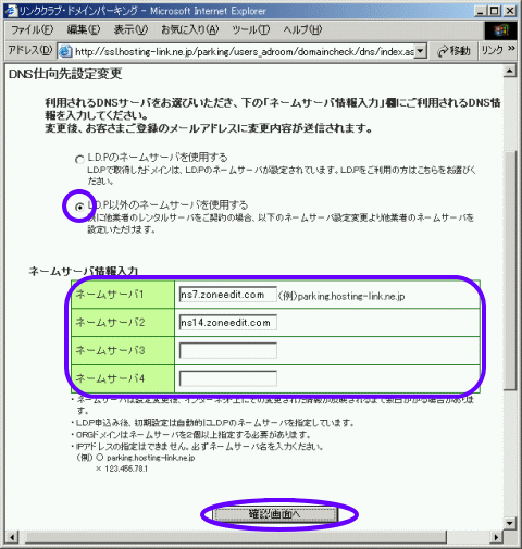 「L.D.P以外のネームサーバーを使用する」にチェックを入れて、