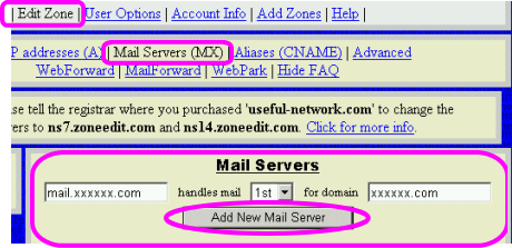 上段の[Edit Zone]→中段の[Mail Servers(MX)]