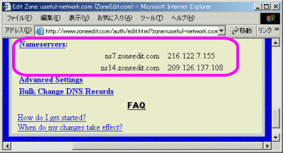 zoneeditのDNS情報は登録時に割り当てられたネームサーバーから