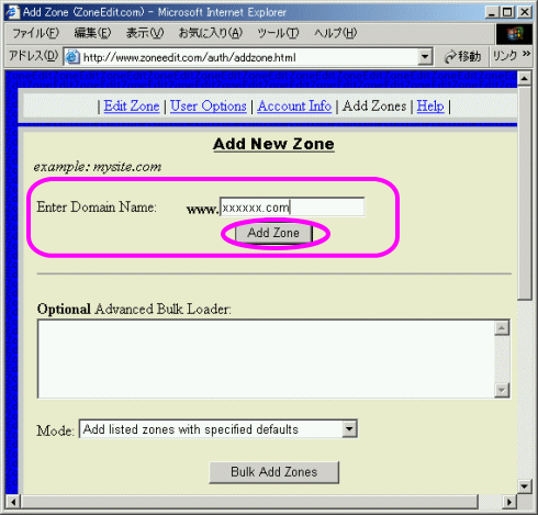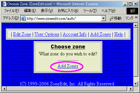 確認方法は、ログイン後、上段左[Edit Zone]→左側[登録したドメイン]をクリック