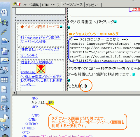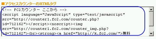 タグをすべてコピー(枠内をクリックしてから[Ctrl+A]後[Ctrl+C])してホームページ上のカウンターを設置したい場所に貼り付けます。
