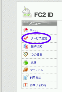 FC2ID画面より「サービスの追加」をクリックして登録しましょう。