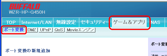 WZR-HP-G450H(BUFFALO製)によるアドレス変換
