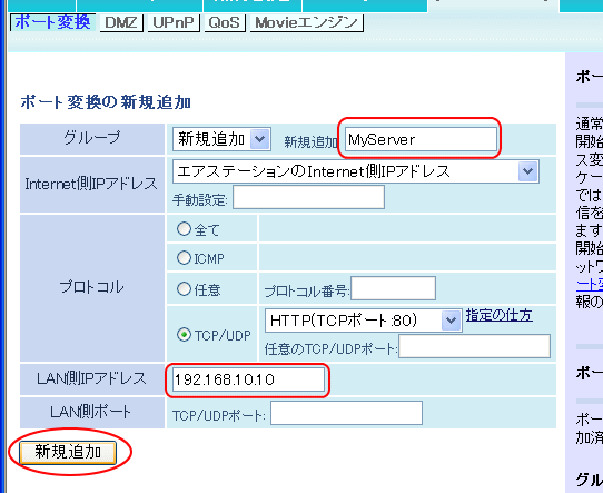 初めてポート変換を設定(1個目)