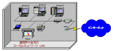 狭い範囲のLANとは、事務所内や家庭内での組織で任意に構成されるもので、