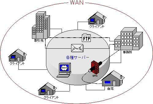 広い範囲のネットワークであるWAN(Wide Area Network)に