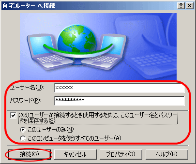「次のユーザーが接続するとき使用するために、このユーザー名とパスワー