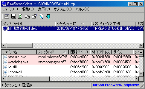 ただし、BlueScreenViewはダンプファイルを解析して内容を表示するだけで、