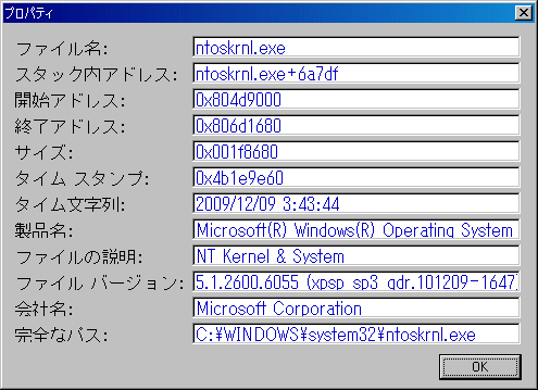 画面下ペインにはダンプファイルより不具合発生時に読み込まれていたドライバが表示されます。