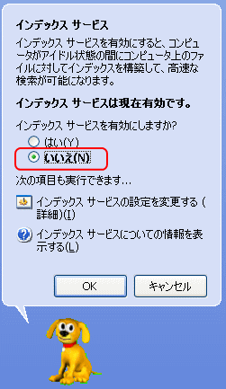 インデックスサービスを無効にすることを奨励しております。