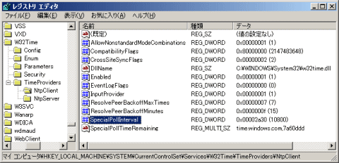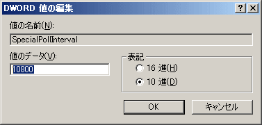 にある「SpecialPollInterval」(REG_DWORD):同期間隔(秒)の値を変更します。