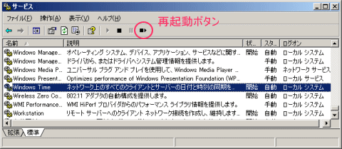 [Windows Time]を選択した状態で「再起動ボタン」をクリックするか、