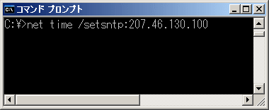 「net time /setsntp:207.46.130.100」でタイムサーバーを設定します。