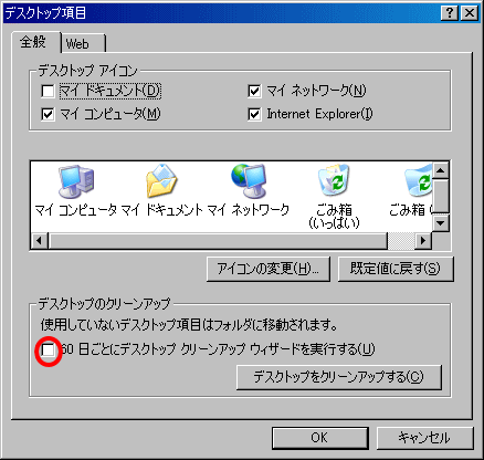 WinXPにはデスクトップのクリーンアップ機能が付いており、