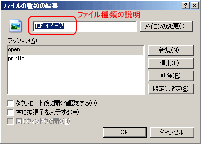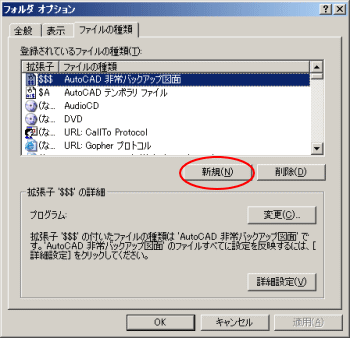 [ファイル種類]タブを選択して、「登録されているファイルの種類(T)」の中に、